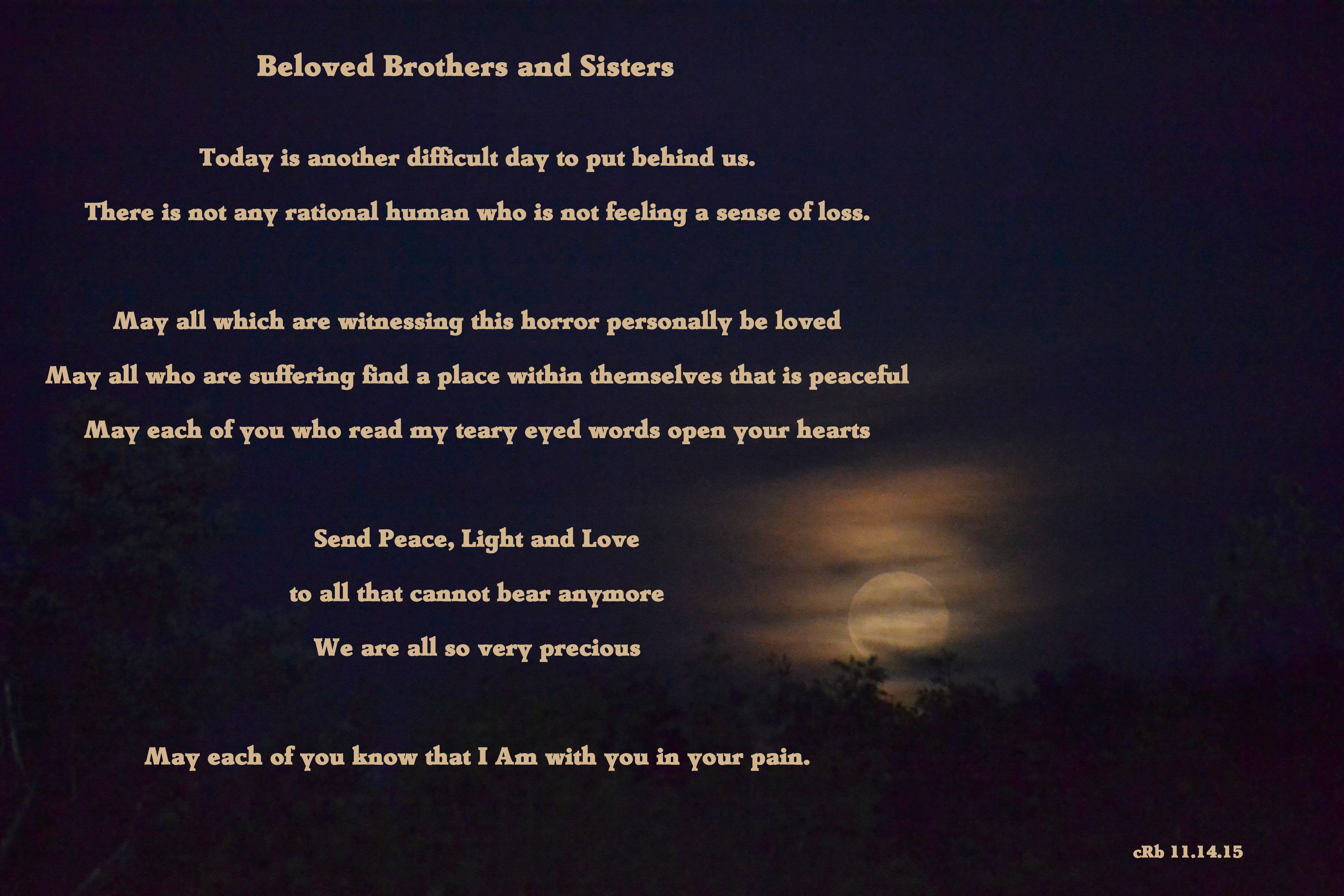 May all which are witnessing this horror personally be loved