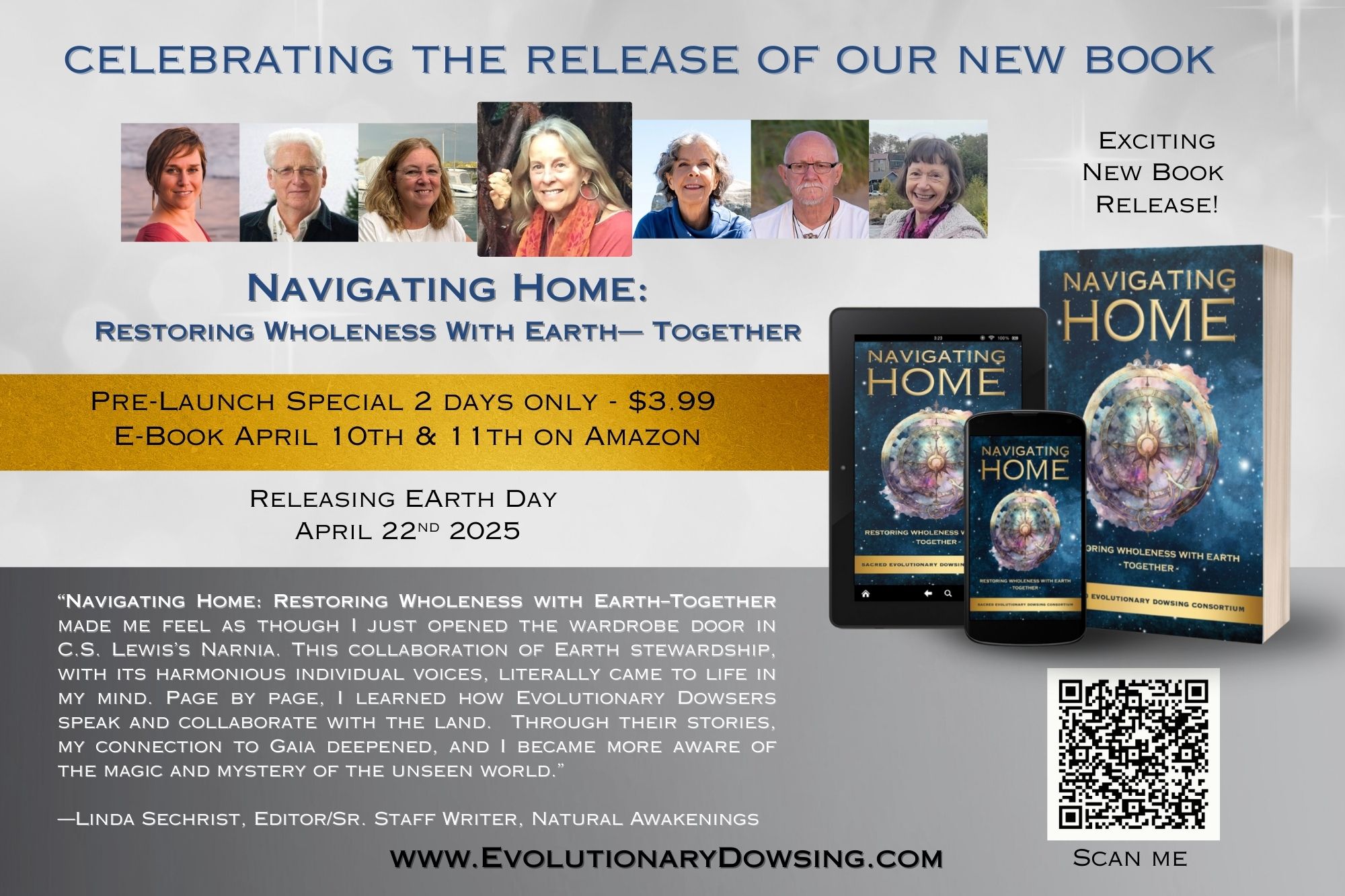 “Navigating Home: Restoring Wholeness with Earth–Together made me feel as though I just opened the wardrobe door in C.S. Lewis’s Narnia. It is well-written and well-organized, allowing for much more than a superficial understanding of sacred evolutionary dowsing, even for newbies. This collaboration of Earth Stewardship, with its harmonious individual voices, literally came to life in my mind. Page by page, I learned how Sacred Evolutionary Dowsers speak and collaborate with the land. Through their stories, my connection to Gaia deepened, and I became more aware of the magic and mystery of the unseen world.”